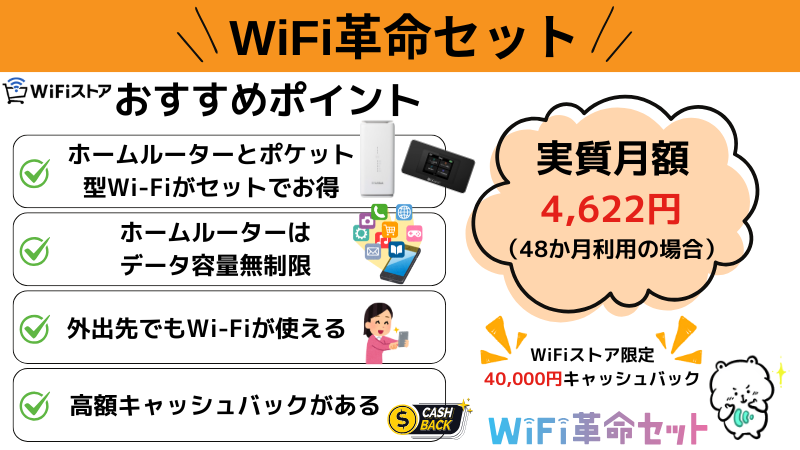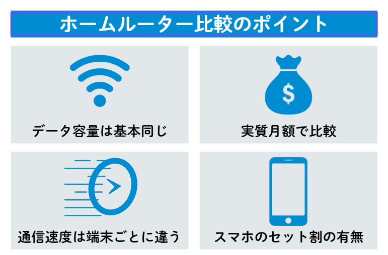 【11社比較】ホームルーター(置くだけWiFi)おすすめランキング!【2026年最新版】 2026 4/23 PR Wi-Fi ホームルーター 2026年4月23日 PR ホームルーターとポケット型WiFiを14日間550円でお試し!ホームルーターとポケット型WiFiが2つ同時に14日間550円で試せちゃう!4月は16セット限定(残り5セット)14日間550円「ゴールデンウィークの旅行先で!」「ご実家の帰省の際に少し」って思っている方必見!なんと550円でWiMAXのポケット型WiFiとホームルーターを14日間だけ両方同時に「お試しレンタル」できちゃう!もちろん気に入れば、そのまま契約しなおしでもOK!4月16セット限定!早い者勝ちです。詳細はこちら申込みはこちら 当ページのリンクには広告が含まれています。※本記事の料金表示は基本的に全て税込みです(一部キャッシュバックなど不課税のものもあります)。 置くだけで利用できるホームルーター(置くだけWiFi)は、モバイル回線を受信し、コンセントに挿すだけでWi-Fi環境を構築できるインターネット接続機器です。 ホームルーターは工事不要で手軽に利用できることから、「置くだけWi-Fi」や「挿すだけWi-Fi」とも呼ばれています。 一方で、契約窓口(プロバイダ)の数が多く、「どれを選べばいいのかわからない」と感じる方もいるのではないでしょうか。 クマウドくん 本当におすすめのホームルーターを知りたい! そこで本記事では、最新情報をもとに、人気のホームルーター10社を徹底比較。おすすめのホームルーター(置くだけWiFi)をランキング形式で紹介します! ホームルーターごとの特徴や、失敗しない選び方も詳しく解説!この記事を読むことで、あなたにピッタリなホームルーターがみつかりますよ。 この記事でわかること ホームルーターの基礎知識 人気ホームルーター11社の安さ・速さ比較 ホームルーターおすすめランキング 失敗しないホームルーターの選び方 この記事の監修者田中佑樹 通信会社勤務 / インターネット回線・WiFiのエキスパート+ 通信会社勤務。光回線からモバイルWiFiまで、15以上の通信サービスに携わった経験を持つインターネット回線・WiFiのエキスパート。プライベートでも通算10以上のサービスの契約・利用しており、専門家・ユーザー双方の視点から、多くの人に役立つ信頼性の高い情報提供を目指しています。(監修者について) 1分でわかる!厳選ホームルーター ベスト3 オールコネクトの独自調査によると、ホームルーターを実際使っている人が「現在使っているホームルーターを選んだ1番の理由」は、「月額料金」でした。 オールコネクト独自アンケート結果 【契約中のホームルーターを選んだ1番の理由】 ※調査対象 ホームルーターを契約している20代~60代の男女200名参照元:モバレコニュースリリース そこでまずは、「安さ」で特におすすめの厳選ホームルーターを3つピックアップします。おすすめのホームルーターをとにかく早く知りたい方は、さっそくチェックしてみてください。 1:Broad WiMAX 無制限・高速通信可能なWiMAXのホームルーターをが初月0円から利用できる。au・UQモバイルのスマホユーザーはセット割でさらにお得! 申し込みサイトをすぐにチェック 記事内のサービス詳細にジャンプ 2:モバレコAir 実質月額料金ホームルーター最安級、ソフトバンクAirと同じ端末・回線なのに安い。ソフトバンク、Y!mobileのスマホユーザーはセット割でさらにお得! 申し込みサイトをすぐにチェック 記事内のサービス詳細にジャンプ 3:WiFi革命セット ホームルーターとポケット型Wi-Fiがお得な価格で使えるセット。ホームルーター単体の月額料金にプラス1,000円ほどで2台持ちができます。 申し込みサイトをすぐにチェック 記事内のサービス詳細にジャンプ \ワンコイン550円!/ホームルーターとポケット型Wi-Fiを14日間お試しできる! 目次ホームルーターはどんな人におすすめ? 自宅用WiFiには、大きく光回線、ホームルーター、ポケット型Wi-Fiがあります。 ホームルーターとは、モバイル回線を受信して、自宅に置くだけでWi-Fi環境が構築できるインターネット接続機器のことです。 まずは、以下のチャートで、使用したい環境から本当にホームルーターが適しているのかを確認しましょう。 光回線、ホームルーター、ポケット型Wi-Fiがおすすめな人はそれぞれ以下の通りです。 ホームルーター⇒工事不要ですぐにWi-Fiが欲しい人光回線⇒開通工事をしてでも高速通信が欲しい人ポケット型Wi-Fi⇒外出先でWi-Fiを使いたい人 光回線とポケット型Wi-Fiがあっていると感じた方は、以下の記事を参考にしてみてください。 あわせて読みたい 安い光回線のおすすめ6選!戸建て・マンションのコスパ最強光回線は? 「光回線をできるだけ安く契約したい」 そう思っても、月額料金だけでは判断しづらいですよね。工事費・事務手数料・キャッシュバック・スマホのセット割など、条件次第… あわせて読みたい 徹底比較!ポケット型WiFi・モバイルルーターのおすすめ5選【2026年4月】無制限で安いのはこれ 持ち運び可能なポケ
