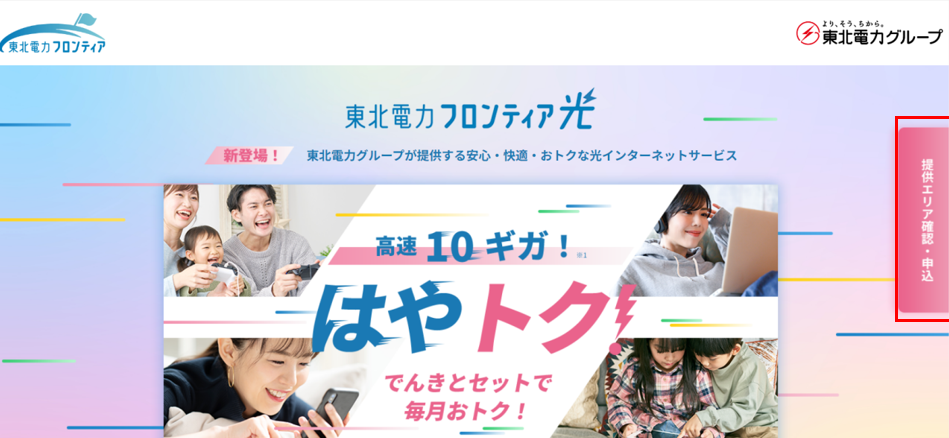 2024年4月18日現在、東北電力フロンティア光は宮城県、山形県、福島県の一部地域のみの提供になります。