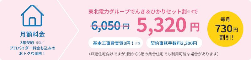 さらに、東北電力フロンティア光は東北電力グループの光回線サービスなので、同グループが提供している電力サービスとのセット割やお得な独自キャンペーンも実施中です。