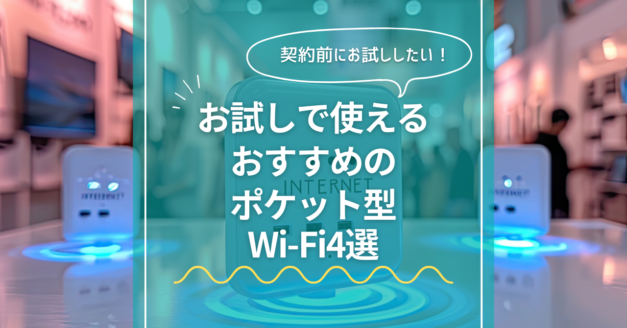 ポケット型Wi-Fiはお試しできる?おすすめ3選と5つの確認ポイントを解説 2026 4/23 PR Wi-Fi ポケット型WiFi 2026年4月23日 PR ホームルーターとポケット型WiFiを14日間550円でお試し!ホームルーターとポケット型WiFiが2つ同時に14日間550円で試せちゃう!4月は16セット限定(残り5セット)14日間550円「ゴールデンウィークの旅行先で!」「ご実家の帰省の際に少し」って思っている方必見!なんと550円でWiMAXのポケット型WiFiとホームルーターを14日間だけ両方同時に「お試しレンタル」できちゃう!もちろん気に入れば、そのまま契約しなおしでもOK!4月16セット限定!早い者勝ちです。詳細はこちら申込みはこちら 当ページのリンクには広告が含まれています。※本記事の料金表示は基本的に全て税込みです(一部キャッシュバックなど不課税のものもあります)。 「外出先でポケット型Wi-Fiを使ってみたいけれど、長期契約は不安・・・」 そんな方向けに、お試しで使えるサービスを3つに絞って紹介します。 本記事を読めば、実際に自分が使う場所でつながりやすさをお試しでき、契約前のストレスを減らせますよ。 さらに、各サービスのメリット・デメリットや確認すべきポイントもご紹介。 初めてでも安心してお試し先を選べるようになります。 目次【おすすめ】550円でホームルーターとポケット型Wi-Fiを両方試せる「トライネット」 当サイトおすすめのWi-Fiがお試しできるサービスは「トライネット」です。 「トライネット」は550円(税込)で14日間もホームルーターとポケット型WiFiをレンタルできるサービスです。 普段利用する場所でお試し利用することで、通信速度に不満がなくインターネットを利用できるか確認できます。 お試しいただいた通信回線の最新端末(SA端末)を取り扱っている「BroadWiMAX」など3つのサービスの中から、自分に合ったサービスをお申し込みできます。詳しくはトライネット端末に同梱するチラシをご確認ください。 メリット3つ 550円で14日間もホームルーターとポケット型WiFiをレンタルできる 利用場所で速度の確認ができる お試し後おトクに契約できる なお、大変人気のサービスのため月間20セットまでとなっています。 ※トライネットのお申し込みは1回限りになります。2回目以降はお申し込みできません。 \ワンコイン550円!/ホームルーターとポケット型Wi-Fiを14日間お試しできる!月間20セットまで トライネット公式サイトはこちら ※https://shibararenai-wifi.jpに遷移します。※トライネットは「縛られないWiFi」のWiFiストア専用プランです。 お試しで利用できるおすすめのポケットWi-Fi3選 15日間無料でお試しできるUQ WiMAX 参照元:公式サイト まずおすすめしたいサービスがUQ WiMAXです。 UQ WiMAXが提供するお試しサービス「Try WiMAX」ではお好きな端末を15日間無料でお試しできます。 中でもおすすめのポケット型Wi-Fiの端末「Speed Wi-Fi 5G X12」は速度に定評があるでおすすめです。 まずは基本情報を確認しましょう。 ★UQ WiMAXの基本情報 運営会社UQコミュニケーションズ株式会社お試しできる期間15日間お試しで利用できるデータ容量上限ナシお試しにかかる料金0円月額料金※1課金開始月~13ヶ月目:4,268円14ヶ月目以降:4,950円初期費用3,300円契約期間なし端末機種Speed Wi-Fi 5G X12端末代金※2クレジットカード払い:9,900円口座振替:27,720円分割時:770円×36回最大通信速度※3下り:3.9Gbps上り:183Mbps月間データ容量※4月間データ容量 制限なし利用回線※5au 5Gau 4G LTEWiMAX 2+ ※1 WiMAX +5G割適用時の料金になります※2 UQ WiMAXオンラインショップで購入した場合※3 記載の速度は技術規格上の最大値であり、実使用速度を示すものではありません※4 スタンダードモードの場合。一定期間内に大量のデータ通信のご利用があった場合、混雑する時間帯の通信速度を制限する場合があります。※5 5Gは一部エリアでの提供となるので、詳しくはエリアマップでご確認ください UQ WiMAXは、UQ コミュニケーションズ株式会社が提供しているインターネットサービスです。UQ コミュニケーションズ株式会社は「UQモバイル」の運営会社でもあり、他WiMAXサービスに開放しているWiMAX回線の大元としての運営も行っています。 UQ WiMAXの公式サイトで新規申し込みできるモバイルルーターは、2023年11月現時点で「Speed Wi-Fi 5G X12」のみです。それ以外はWebで新規申し込みできないため、端末選びに迷うことがありません。 そんなUQ WiMAXはこの記事で紹介するお試しできるポケット型Wi-Fiの中で、一番速度が出るポケット型Wi-Fiです。 またお試しで利用できるデータ容量に上限がないので15日間利用し放題なのも大きなメリット。 ただし、本契約する・しないにかかわらず、お試し期間終了後は返却する必要があります。返却を忘れたり、期限が過ぎると端末代相当の金額を請求されるので注意してください。 \WiMAXを15日間無料でお試し/ UQ WiMAX公式サイトはこちら UQ WiMAXのメリット WiMAX回線提供元の高品質なサポート 実店舗がある 口座振替が選べて振替手数料無料 プラスエリア