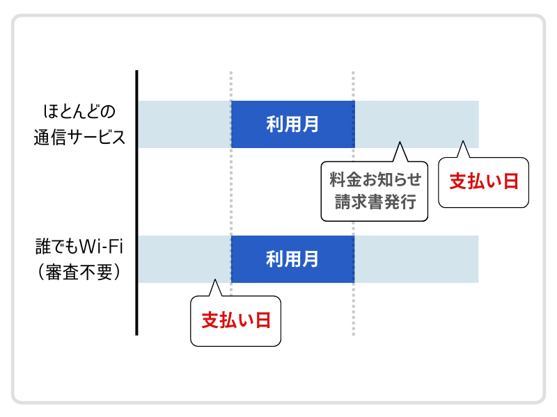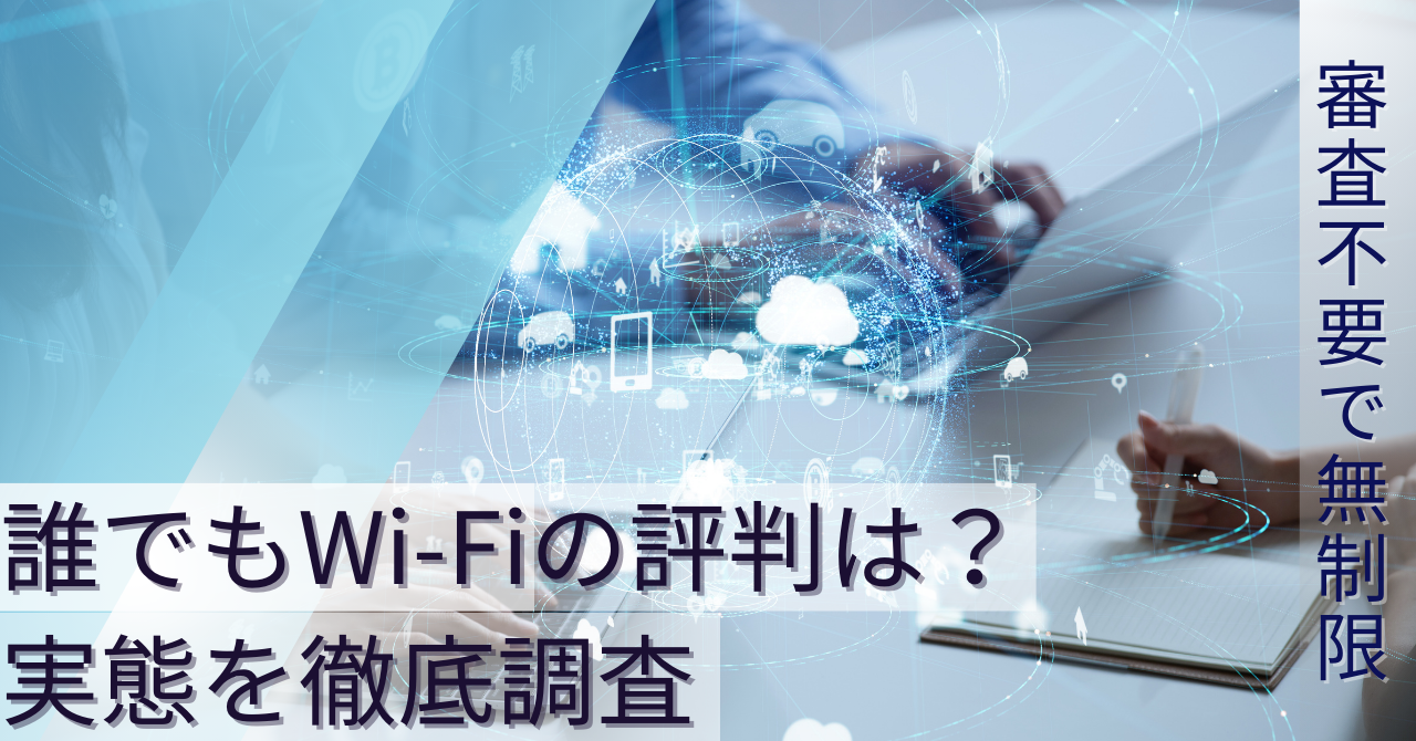 誰でもWi-Fiの評判|口コミから判明したメリット・デメリットや審査不要の実態を解説 2026 3/12 PR Wi-Fi WiMAX ホームルーター ポケット型WiFi 2026年3月12日 PR ホームルーターとポケット型WiFiを14日間550円でお試し!ホームルーターとポケット型WiFiが2つ同時に14日間550円で試せちゃう!4月は16セット限定(残り5セット)14日間550円「ゴールデンウィークの旅行先で!」「ご実家の帰省の際に少し」って思っている方必見!なんと550円でWiMAXのポケット型WiFiとホームルーターを14日間だけ両方同時に「お試しレンタル」できちゃう!もちろん気に入れば、そのまま契約しなおしでもOK!4月16セット限定!早い者勝ちです。詳細はこちら申込みはこちら 誰でもWi-Fiは、審査なしで契約できる便利なWi-Fiです。 ポケット型Wi-Fiとホームルーターも選べるなど、ユーザーにとってはかなり嬉しいサービスですが、ネットには賛否両論の意見が溢れているので、契約を迷っている方が多いのではないでしょうか。 本記事では、口コミを整理して分かった誰でもWi-Fiのメリット・デメリットや、審査不要の実態について解説します。 誰でもWi-Fiが気になっていた方は、ぜひ本記事を参考にしてみてください。 \ 日本初の無審査で使える無制限Wi-Fi /速度制限なし!最安値5,480円(税込)~! 誰でもWi-Fi公式サイトはこちら 目次本当に審査なしで使える!誰でもWi-Fiの契約に必要なもの 誰でもWi-Fiが審査なしで使える一番の理由は、料金が前払い方式だからです。 多くのインターネットサービスや携帯電話などは、その月の利用分は次の月末に支払う後払い方式をとっています。 誰でもWi-Fiは料金が前払い方式(前月27日)のため、ユーザーの信用情報をチェックする必要がありません。 そのため、クレジットカードがなくても契約できます。 ※27日が土日祝日の場合、支払い日はその翌営業日になります。 必要なものは銀行口座と本人確認書類のみ 誰でもWi-Fiの支払い方法は、口座振替(銀行引き落とし)のみです。銀行口座を持ってさえいれば、審査なしで誰でも契約できます。 また、本人確認書類として、顔写真付きの身分証明書が必要です。下記のいずれか一つをオンラインでアップロードします。 ◆本人確認書類 運転免許証 障がい者手帳 外国人登録証(永住) 在留カード 住基カード パスポート マイナンバーカード(通知カードは不可) なお、誰でもWi-Fi以外で身分証の提出が不要なWi-Fiサービスについては、【審査なし・審査ゆるめ】誰でもWi-Fi以外のおすすめサービスの章で紹介しています。 誰でもWi-Fiのサービス概要 参照元:誰でもWi-Fi 公式サイト ここからは、誰でもWi-Fiの料金やエリアなどのサービス概要を紹介していきます。 なお、誰でもWi-Fiは単独でも契約できますが、同じ会社が運営している審査不要のスマホ「だれでもモバイル」を同時契約すると料金がお得になるサービスとなっています。 誰でもWi-Fiの料金プラン 誰でもWi-Fiを使うのにかかる料金は、下記の2つです。 月額料金(税込5,480円〜7,980円) 契約事務手数料(税込10,000円) 月額料金は、だれでもモバイルの契約状況と、契約事務手数料の有無によって次のように変わります。 だれでもモバイルの契約状況手数料ありプラン(初期費用10,000円)手数料なしプラン(初期費用0円)3GBプラン以上5,480円6,480円1GBプラン5,980円6,980円未契約6,980円7,980円 ※表の金額は全て税込みです。※もし、誰でもWi-Fiの契約中にだれでもモバイルの契約・契約プランの変更・解約をした場合は、料金が変更されます。 結論としては、「だれでもモバイル3GBプラン以上を契約して、手数料ありプランを選ぶ」場合に、月額料金は5,480円(税込)と最安値になります。 だれでもモバイルの料金は後ほどメリットの章で解説しますが、1GBプラン(かけ放題付き)で3,300円〜です。 手数料ありプランは、契約事務手数料10,000円(税込)を最初に支払うため初期費用はかかります。 しかし月額料金が手数料なしプランに比べて1,000円(税込)安いため、手数料ありプランの方が年間支払額は安いです。 手数料なしプランの場合は審査がある また注意点として、手数料なしプランの場合は審査があります。 “事務手数料無しの場合審査があります就業先、生活保護先、緊急連絡先等のご確認をさせていただきます。” ※引用元:誰でもWi-Fi公式サイト(申し込みフォームで「Wi-Fiの申し込み初期費用無しプラン」を選択した場合の表示ページから) 誰でもWi-Fiは審査なしが大きなメリットのインターネットサービスですが、手数料なしプランの場合は、就業先などの確認があると明記されています。 これらの情報を伝えたくない場合は、手数料ありプランを選びましょう。 解約時にWi-Fi端末を返却すると5,000円戻ってくる 誰でもWi-Fiは、解約時にレンタルWi-Fi端末を返却すると5,000円の返金があります。 そのため、実質的な契約事務手数料は5,000円(税込)と考えておきましょう。 \ 日本初の無審査で使える無制限Wi-Fi /速度制限なし!最安値5,480円(税込)~! 誰でもWi-Fi公式サイトはこ
