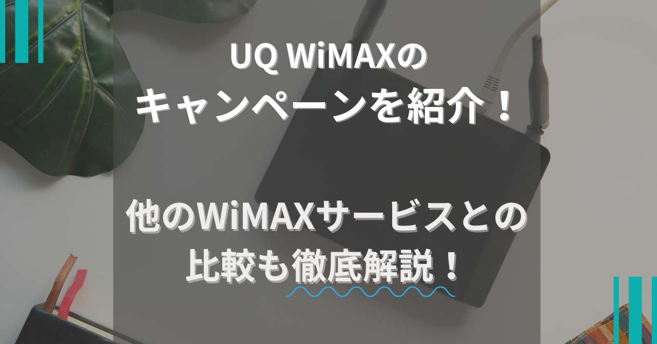 【2026年4月】UQWiMAXのキャンペーンについて|どれだけお得なのかを徹底解説 2026 4/01 PR Wi-Fi WiMAX 2026年4月1日 PR ホームルーターとポケット型WiFiを14日間550円でお試し!ホームルーターとポケット型WiFiが2つ同時に14日間550円で試せちゃう!4月は16セット限定(残り5セット)14日間550円「ゴールデンウィークの旅行先で!」「ご実家の帰省の際に少し」って思っている方必見!なんと550円でWiMAXのポケット型WiFiとホームルーターを14日間だけ両方同時に「お試しレンタル」できちゃう!もちろん気に入れば、そのまま契約しなおしでもOK!4月16セット限定!早い者勝ちです。詳細はこちら申込みはこちら 当ページのリンクには広告が含まれています。※本記事の料金表示は基本的に全て税込みです(一部キャッシュバックなど不課税のものもあります)。 現在、UQ WiMAXでは機種代金から最大21,780円割引になるキャンペーンを実施中です。 UQWiMAXは定期的にキャンペーンをおこなっているので、どうせならお得な時期に契約したいですよね。 本記事では、UQWiMAXのキャンペーン情報やメリット・デメリット、キャンペーンを受けるための申し込み方法までを徹底解説します。 \ 口座振替の手数料が無料! / 公式サイトではチャットでオペレーターに質問可能! UQ WiMAX公式サイトはこちら 目次【2026年4月】UQ WiMAXの最新キャンペーンを詳しく紹介 最初に、UQ WiMAXはどのようなサービスなのか、プラン内容から確認しましょう。 UQ WiMAX概要 プラン名WiMAX +5G ギガ放題プラスS端末タイプホームルーターポケット型Wi-Fi回線サービスau、WiMAX(5G対応)月額料金課金開始月~13カ月目:4,598円/月、14カ月目~:5,280円/月、(「WiMAX +5G割」適用の場合)実質月額料金5,290円/月(36か月利用の場合)端末代金27,720円契約期間なし月間データ容量制限なし※1最大通信速度※2、※3Speed Wi-Fi DOCK 5G 01:3.5Gbps(下り)、Speed Wi-Fi 5G X12:3.9Gbps(下り)、Speed Wi-Fi HOME 5G L13:4.2Gbps(下り)スマホセット割au・UQ モバイル 未成年の対応クレジットカードをお持ちでない場合は、親権者名義のカードや口座振替で申し込めます。申込時には親権者同意書と本人確認書類が必要です。 ※1 スタンダードモードの場合。一定期間内に大量のデータ通信のご利用があった場合、混雑する時間帯の通信速度を制限する場合があります。※2 5G SAに対応しています。5G SAは一部エリアで提供しています。※3 ベストエフォート型サービスです。実際の通信速度は、お客さまのご利用環境、回線の状況などにより変化します。 UQ WiMAXの主なキャンペーン ■WiMAX +5G割内容:13カ月間月額料金から682円/月割引期間:終了日未定 ■UQ WiMAXおトク割内容:端末代最大21,780円割引期間:終了日未定※キャンペーンの詳細は公式サイトでご確認ください。 UQ WiMAXで開催している最新キャンペーンを、詳しく紹介していきます。 UQ WiMAXの主なキャンペーンは、以下の通りです。 \UQ WiMAX2026年4月最新キャンペーン/ UQ WiMAX おトク割(条件達成で機種代金が最大21,780円割引) WiMAX +5G割(13カ月間、月額料金が682円割引) スマホとセットでおトク!スマホ料金が永年割引 機種変更おトク割(条件達成で機種代金が17,820円割引) なお、UQ WiMAXでは、現時点ではキャッシュバックキャンペーンは開催されていません。まずは、UQ WiMAXのメインキャンペーンを見ていきましょう。 端末代金が最大で21,780円割引になる「UQ WiMAX おトク割」 参照元:UQ WiMAX公式サイト キャンペーン内容新規契約で対象機種の購入と同時に対象の料金プランに加入すると最大21,780円を割引適用条件UQ WiMAX公式オンラインショップで対象機種を新規購入対象プラン(料金プランはギガ放題プラスS(Netflixパック含む)、ギガ放題プラス ホームルータープラン/ギガ放題プラス モバイルルータープラン、ギガ放題プラス Netflixパック)のいずれかを契約 「UQ WiMAX おトク割」は、対象の機種を新規契約で購入した場合に、端末代金が最大21,780円割引になる大変お得なキャンペーンです。 契約できる端末は以下があります。 UQ WiMAXおトク割の内容対象端末Speed Wi-Fi HOME 5G L13Speed Wi-Fi DOCK 5G 01Speed Wi-Fi 5G X11端末代27,720円21,780円割引価格21,780円21,778円割引後の価格5,940円2円 ※上記はUQ WiMAX公式オンラインショップから申し込みの場合の割引額です。お電話での契約の場合は値引き額が異なるため、公式の相談窓口までお問い合わせください。※UQ WiMAX販売店舗では、機種価格が異なる場合があります。詳しくはUQ WiMAX販売店舗にお問い合わせください。 キャンペーンを受けるには対象プランへの申し込みが必要で、「ギガ放題プラスS」または「ギガ放題プラスS Netflixパック」の契約が条件です。 対象となる端末は、最新端末と旧端末で、それぞれ割引額が異なります。 WiMAXのホームルーター「Speed Wi-Fi HOME 5G L13」と、ポケット型Wi-Fi「Speed Wi-Fi DOCK 5G 01」はいずれも、価格は共通で27,720円。21,780円が割引され、5,940円で端末が購入できます。 旧端末の「Speed Wi-Fi 5G X11」は端末代21,780円で、割引後は端末代が2円になります。ただし、在庫限りになりま