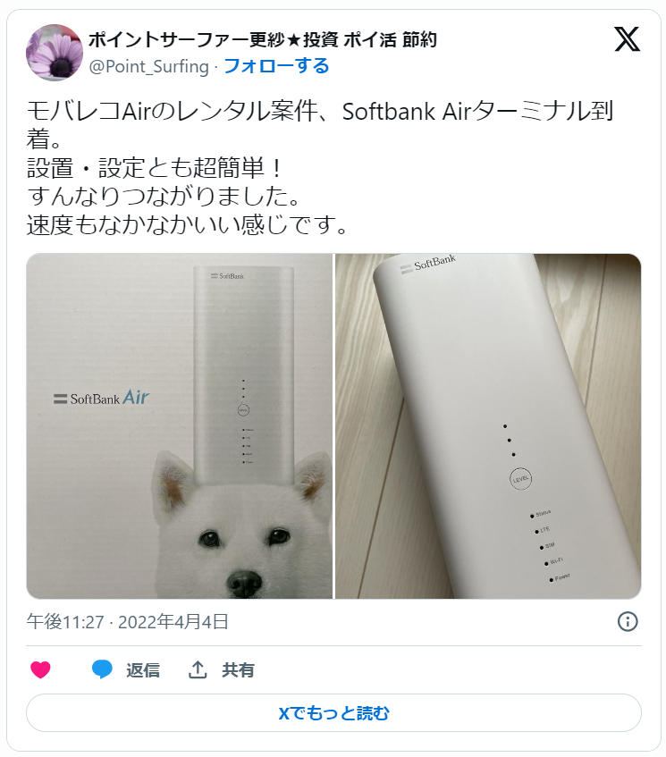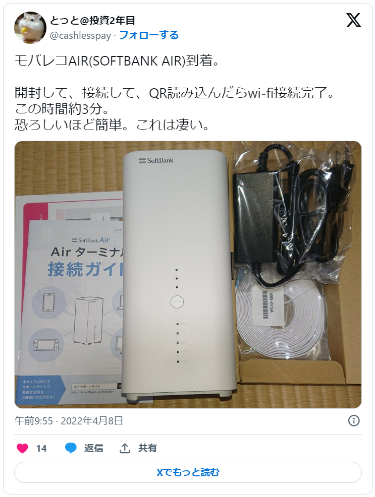 モバレコAirはSoftBank Airと同じ通信品質で、SoftBank Airよりも安く使えるホームルーターです。