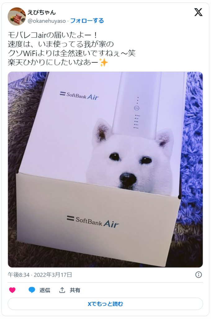 • モバレコAirはSoftBank Airと同じサービスで月額料金が安い