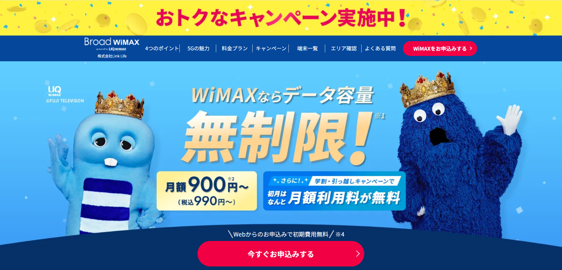 4Gの通信速度が遅い…よくある原因と対処法まとめ|おすすめ回線6選も紹介 2026 3/26 PR Wi-Fi 格安スマホ 2026年3月26日 PR ホームルーターとポケット型WiFiを14日間550円でお試し!ホームルーターとポケット型WiFiが2つ同時に14日間550円で試せちゃう!4月は16セット限定(残り5セット)14日間550円「ゴールデンウィークの旅行先で!」「ご実家の帰省の際に少し」って思っている方必見!なんと550円でWiMAXのポケット型WiFiとホームルーターを14日間だけ両方同時に「お試しレンタル」できちゃう!もちろん気に入れば、そのまま契約しなおしでもOK!4月16セット限定!早い者勝ちです。詳細はこちら申込みはこちら 目次 4Gが遅い時にはWi-Fiルーターを持とう!おすすめ回線6選 ここからは、おすすめのモバイルルーターを6つ紹介します。 docomo・SoftBankユーザーのサブ機には、WiMAX回線がおすすめです。WiMAX回線なら、以下5つがおすすめ。 5Gが低価格で使える「Broad WiMAX」 5G端末をレンタルで使用できる「MUGEN WiFi」 5G対応のWiMAX端末が14日間550円でお試しできるサービス「トライネット」 5G対応でデータ上限を月ごとに変更できる「選べるWiFi」 5G端末をお試し利用できる「UQ WiMAX」 auユーザーやエリアに左右されたくない方のサブ機にはクラウドSIM型Wi-Fiの以下がおすすめです。 クラウドSIM系サービスの中では最安級の「ZEUS WiFi」 それぞれ、詳しく紹介します。 5Gが低価格で使える「Broad WiMAX」 参照元:Broad WiMAX docomo・SoftBankユーザーの方にはWiMAX回線がおすすめです。中でも「Broad WiMAX」はWiFiストア経由でのお申し込みで高額キャッシュバックや事務手数料無料の特典があり、乗り換えサポートなども充実していたりと、手厚いサポートがほしい方にもおすすめです。 〇Broad WiMAX概要(税込) スクロールできます プラン名ギガ放題フラットプラン端末タイプホームルーター、ポケット型WiFi回線サービスau、WiMAX(5G対応)月額料金初月:0円、1か月目~:4,708円/月実質月額料金3,328円(36か月利用の場合)端末代金31,680円(端末月々割で0円)契約期間なし月間データ容量無制限※1最大通信速度※2ホームルーター:4.2Gbps(下り)、ポケット型WiFi:3.9Gbps(下り)スマホセット割au、UQ mobile未成年の対応18歳以上の方が契約可能です。18歳未満の場合は申し込みは可能ですが親権者名義で契約してください。 ※1 一定期間内に大量のデータ通信のご利用があった場合、混雑する時間帯の通信速度を制限する場合があります。※2ベストエフォート型サービスです。実際の通信速度は、お客さまのご利用環境、回線の状況などにより変化します。 Broad WiMAXの主なキャンペーン ■WiFiストア経由で47,000円キャッシュバック内容:WiFiストア経由の新規申込(端末一括購入)で47,000円キャッシュバック!開催期間:終了日未定 ■乗換えキャンペーン内容:乗り換え時の違約金最大40,000円還元開催期間:終了日未定 ■WiFiストア経由で事務手数料無料内容:WiFiストア経由の申し込みで事務手数料無料開催期間:終了日未定 ■2台目キャンペーン内容:2台同時申し込みで5,000円キャッシュバック開催期間:終了日未定 ■初月0円内容:初月の月額利用料割引開催期間:終了日未定 ■端末月々割内容:端末購入代金880円×36回割引で端末代が実質無料開催期間:終了日未定 Broad WiMAXのメリット 工事不要でモバイルルーターとホームルーターを利用できる WiMAXの最新端末を使用できる データ通信容量無制限で利用できる※1 契約解除手数料還元のお乗換えキャンペーンで他社からの乗り換えで違約金の還元あり WiFiストア限定で47,000円キャッシュバック(端末一括購入時)、事務手数料3,300円が無料 Broad WiMAXは、工事不要で利用できるため、すぐに新しいインターネット回線がほしい方にも最適です。WiMAXの最新端末が使用でき、モバイルルーターなら最大下り通信速度3.9Gbps(※2)と高速通信が可能です。またデータ通信容量も無制限(※1)のため、通信制限の心配がほとんどありません。 さらに他社からの乗り換えの場合は、契約解除手数料還元のお乗換えキャンペーンによって最大40,000円の違約金が還元されます。 他にもBroad WiMAXには、通信速度が遅い、電波状況が悪いなどの場合に使える「いつでも解約サポート」も。違約金の負担なしでBroad WiMAXが紹介する他の回線に乗り換えできるため、初めての利用でも安心です。 Broad WiMAXは、下記リンクからの申し込みで事務手数料無料で契約できます。ぜひ、詳細をチェックしてください。 \ WiFiストア限定 /47,000円キャッシュバック&事務手数料3,300円無料! Broad WiMAX公式サイトはこちら Broad WiMAXについては、以下の記事でも詳しく紹介しています。 あわせて読みたい Broad WiMAXの評判を徹底検証|口コミでわかるメリット・デメリット この記事でわかること 悪い口コミだけでなく良い口コミも多い良い口コミをチェック→悪い口コミをチェック→ Broad WiMAXは実質月額が安い 当サイトからの申し込み、端末… 5G端末をレンタルで使用できる「MUGEN WiFi」 参照元:MUGEN WiFi 「MUGEN WiFi」もdocomo・SoftBankユーザーのサブ機