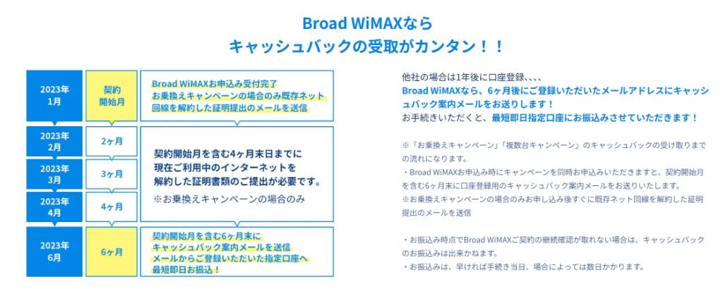Broad WiMAXに申し込みの際には、利用中のインターネットサービスと同じ名義でBroad WiMAXを申し込みしてください。申込時に、乗り換えキャンペーンに申し込みする必要があります。