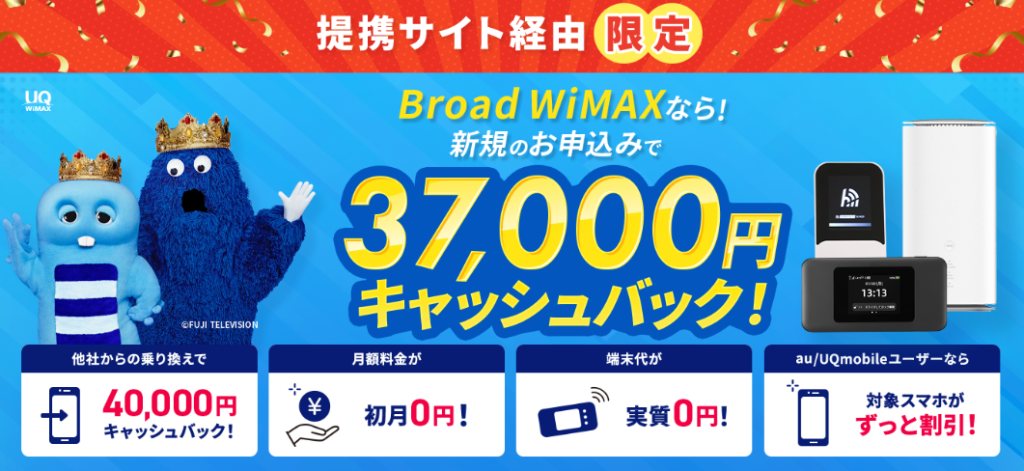 条件を満たせば最大34,000円キャッシュバック※WiFiストア経由の場合